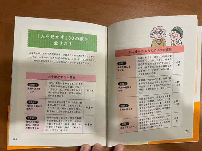 人間関係を良くするために、関心を持つ、純粋な関心、相手のことに関心、知る、理解する。外見を良くすることも大事である。笑顔で微笑む。笑顔には価値がある。名前を印象つけてしっかりと覚える。話をよく聞く、理解する。相手の関心事の話題を出す。心から賞賛する。相手の話を聞き心遣いを持つ。
